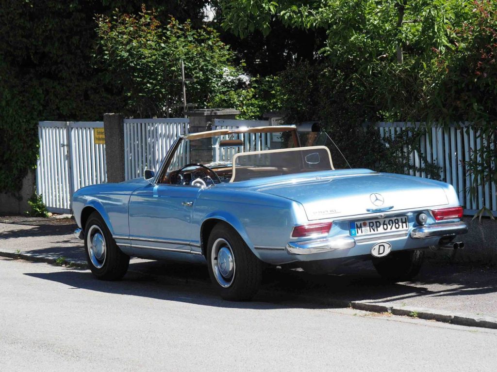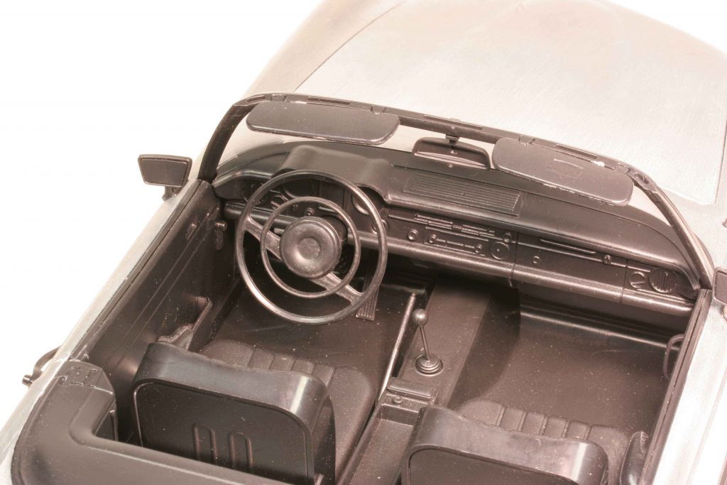 Das Original gab es zwischen 1963 und 1971 sukzessive in drei Motorisierungen, als 230 SL, 250 SL und als 280 SL, und während dieser Jahre erlebte der Mercedes W113 kleine Evolutionen. Norev baut seine Formwerkzeuge so, dass alle drei Varianten machbar sind, und sogar die US-Exportversion ist eingeplant. So gibt es also unterschiedliche Felgen (frühe mit kleinen Radkappen und außen liegenden Radzierringen, beim 280 SL einteilige Radkappen), die Lenkräder sind typspezifisch, die Außenspiegel auch, und für die US-Version hat Norev Stoßstangenhörner und seitliche Positionsleuchten konstruiert. Interessanterweise war das Facelift des W113 nicht gleichbedeutend mit einer Änderung der Motorisierung, sondern wurde im August 1967 eingeführt, betrifft also auch die letzten 250 SL, nicht nur den 280 SL. Und, so ganz nebenbei bemerkt: Ab August 1970 war der 280 SL mit den Fuchs-Barockalus optional lieferbar.