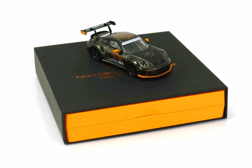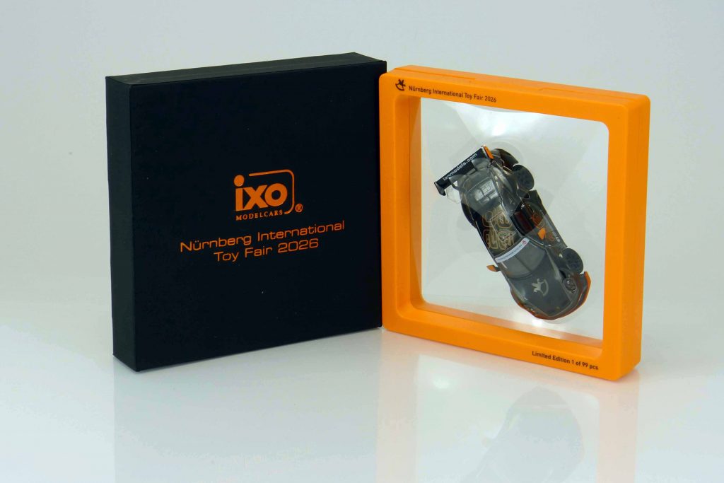 „Shit happens“ – mit diesen zwei Worten kann man die ungewöhnliche Geschichte des diesjährigen Messemodells von Ixo zusammenfassen. Ixo-Messemodelle stellen ja immer etwas Besonderes da, haben sie doch eine Auflage von nur 99 Exemplaren und werden handverlesen an gute Kunden und Freunde des Hauses abgegeben. Auch Caramini-online kam in den Genuss einer dieser Exklusivitäten. Waren es bisher besonders gestaltete Miniaturen im Maßstab 1:43, so gab es diesmal eine geschrumpfte Version im Maßstab 1:64, ganz dem aktuellen Trend auf dem Modellautomarkt folgend. Nichtsdestotrotz ist der Porsche 911 GT3 Cup (Typ 992/I) ganz hervorragend ausgeführt, ganz wie die Großen. Sehr interessant ist die Verpackung des Modells: In einer Klappbox mit zwei durchsichtigen Folien liegt es sicher zwischen diesen, wie ein Sandwich. Doch kommen wir zurück zur ungewöhnlichen Geschichte um diese Rarität. Als die Redaktion von Caramini-online wieder daheim im Hauptquartier war, glänzte der kleine Porsche durch Abwesenheit. Wollte er die warmen Messehalle nicht verlassen, scheute er sich vor der Kälte draußen? Nichts von beiden, er wurde einfach vergessen, vergessen im Eifer der Fachgespräche auf dem Stand von Brekina/PCX87. Doch Martin Neumann von Model Car World vernahm ein leises Schluchzen und rettete den kleinen Porsche. Dank seiner Aufmerksamkeit ist er nun wohlbehalten in seiner neuen Heimat angekommen, ein wahres Happy End.