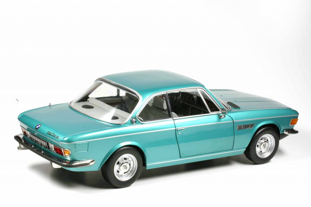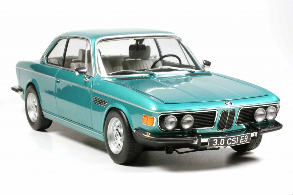 KK-Scale KKDC120191 BMW 3.0 CSI E9 türkismetallic. Fertigmodell Zinkdruckguss, Maßstab 1:12. Weitere Farben sind Hellblaumetallic, Rotmetallic, Schwarz, Weiß und Taigagrün, BMW-Aluminiumfelgen oder Alpina-Felgen. UVP je 199,95 €.