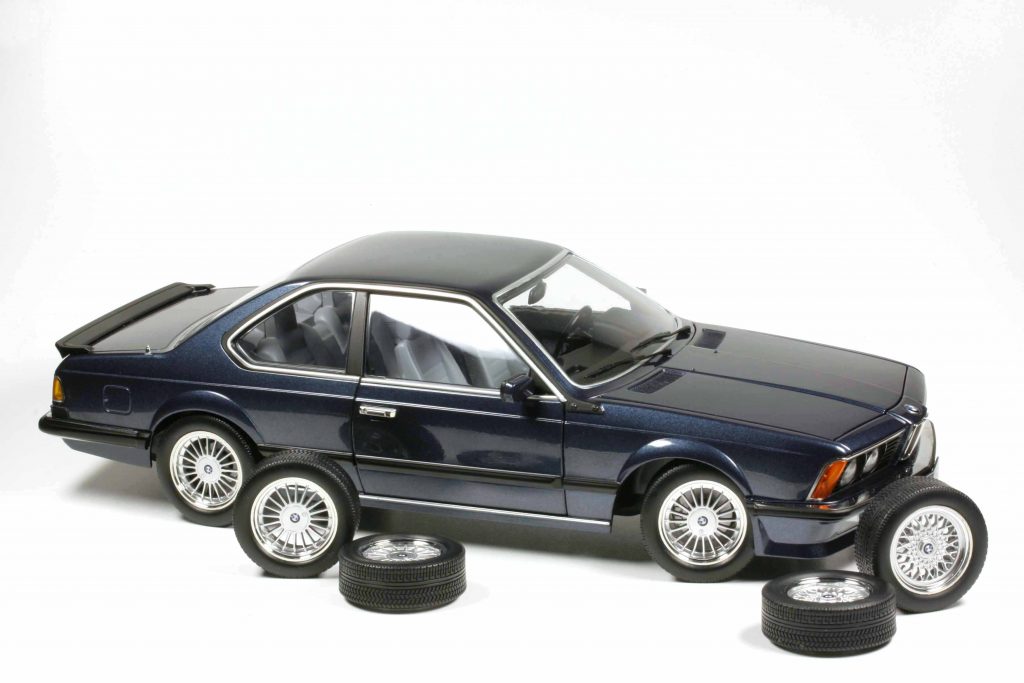 KK Scale 120161 BMW M 635 CSI 1987 blaumetallic. Fertigmodell Zinkdruckguss, Maßstab 1:12. UVP 199,95 € und ACC054 Alpina-Reifenset Maßstab 1:12, UVP 19,95 €.