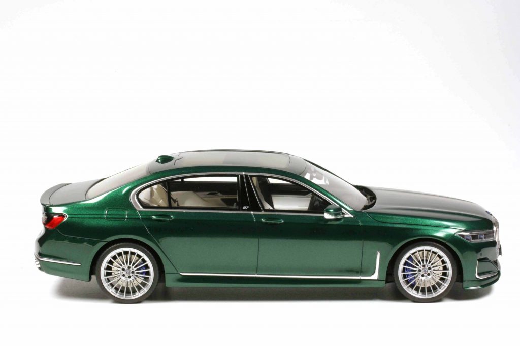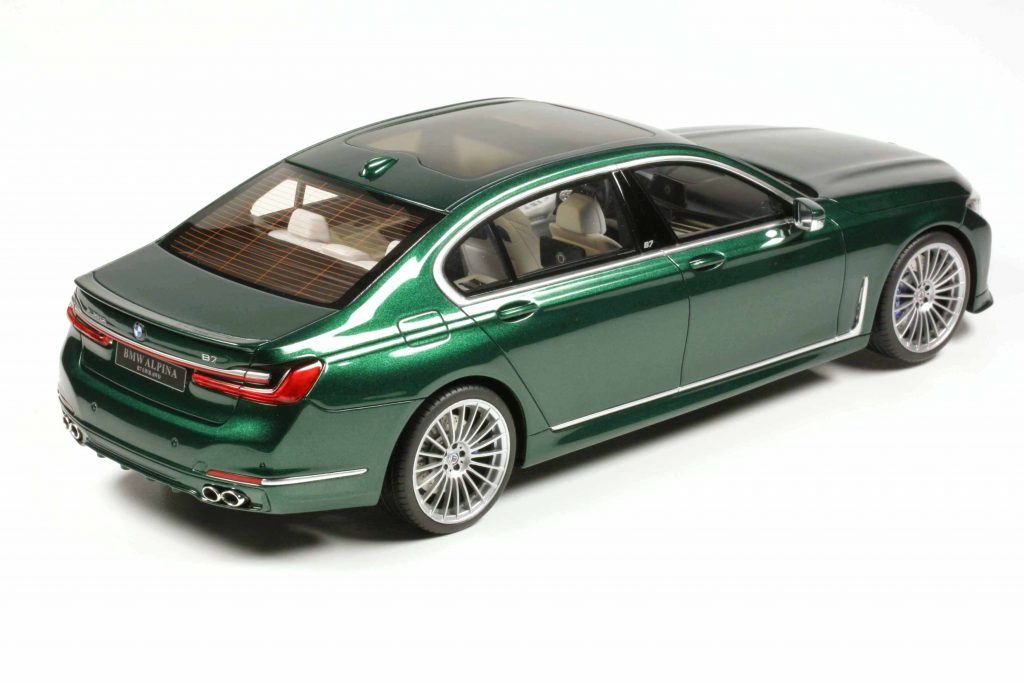 GT Spirit GT942 BMW Alpina B7 (i.e. 7er G12) 2022 dunkelgrünmetallic. Fertigmodell Resine, Maßstab 1:18. Auflage 1400 Exemplare. Preis ca. 120 Euro.