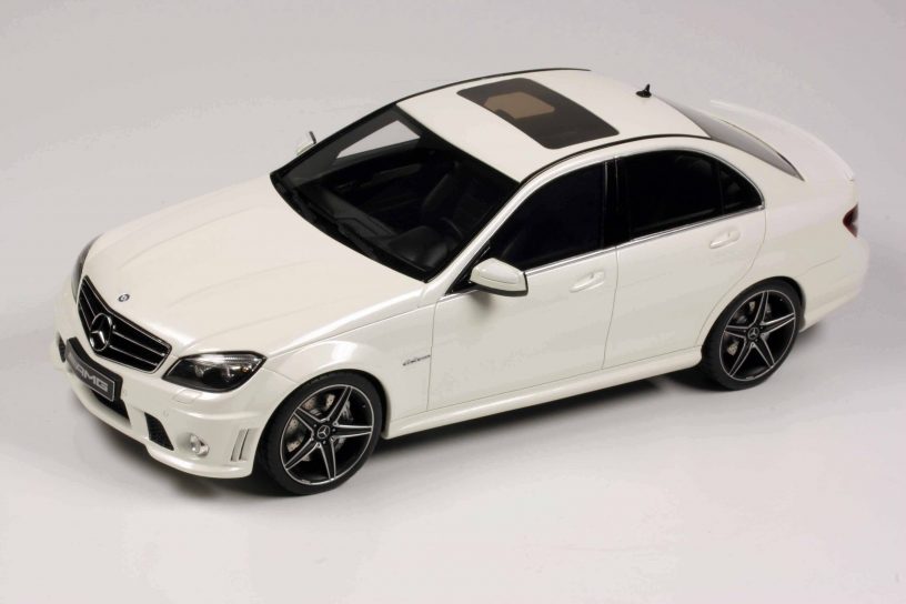 GT Spirit GT928 Mercedes-AMG C 63 W204 2007 weißmetallic. Fertigmodell Resine, Maßstab 1:18. Auflage 999 Exemplare. Preis ca. 110 Euro.