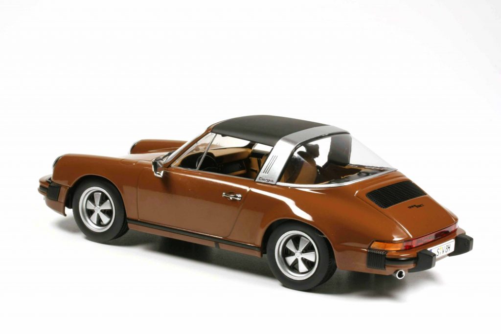 KK-Scale 180923 Porsche 911 SC Targa 1974 „Tatort Stuttgart“ kaffeebraun. Fertigmodell Zinkdruckguss, Maßstab 1:18. Abnehmbares Targadach beiliegend. UVP 79,95 €.