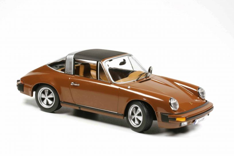 KK-Scale 180923 Porsche 911 SC Targa 1974 „Tatort Stuttgart“ kaffeebraun. Fertigmodell Zinkdruckguss, Maßstab 1:18. Abnehmbares Targadach beiliegend. UVP 79,95 €.