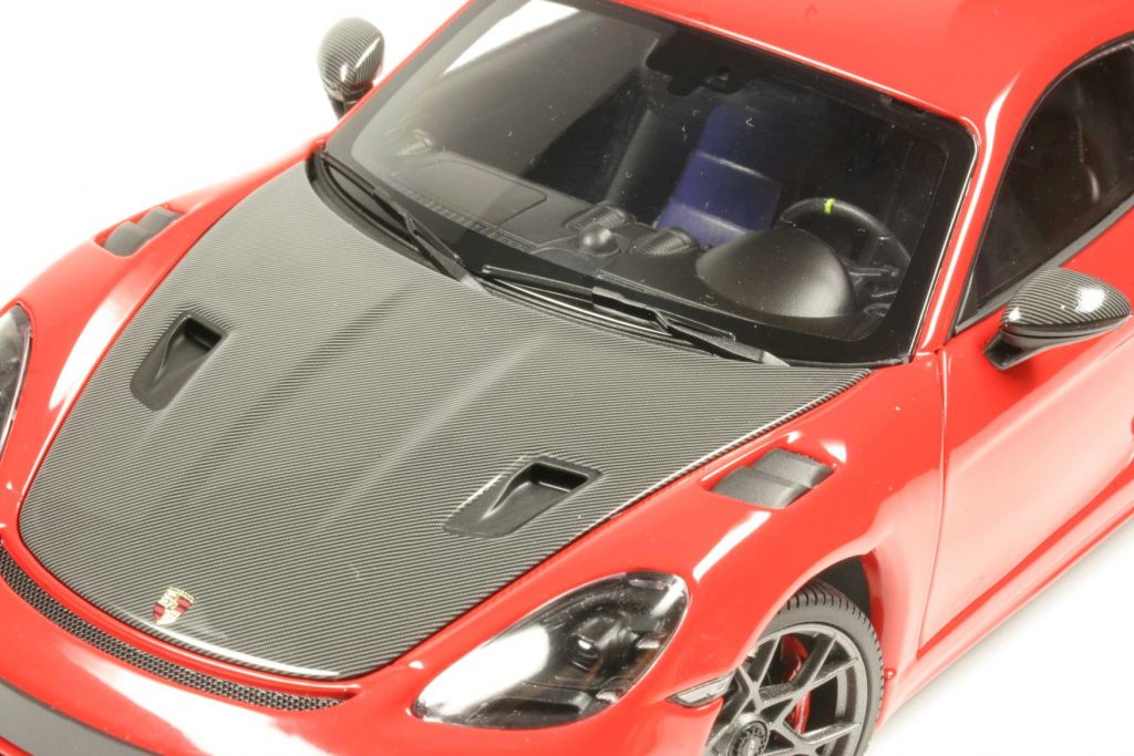 Minichamps 110062120 Porsche 718 Cayman (Typ 982) GT4 RS 2024 rot. Fertigmodell Zinkdruckguss, Maßstab 1:18. UVP 209,95 Euro.
