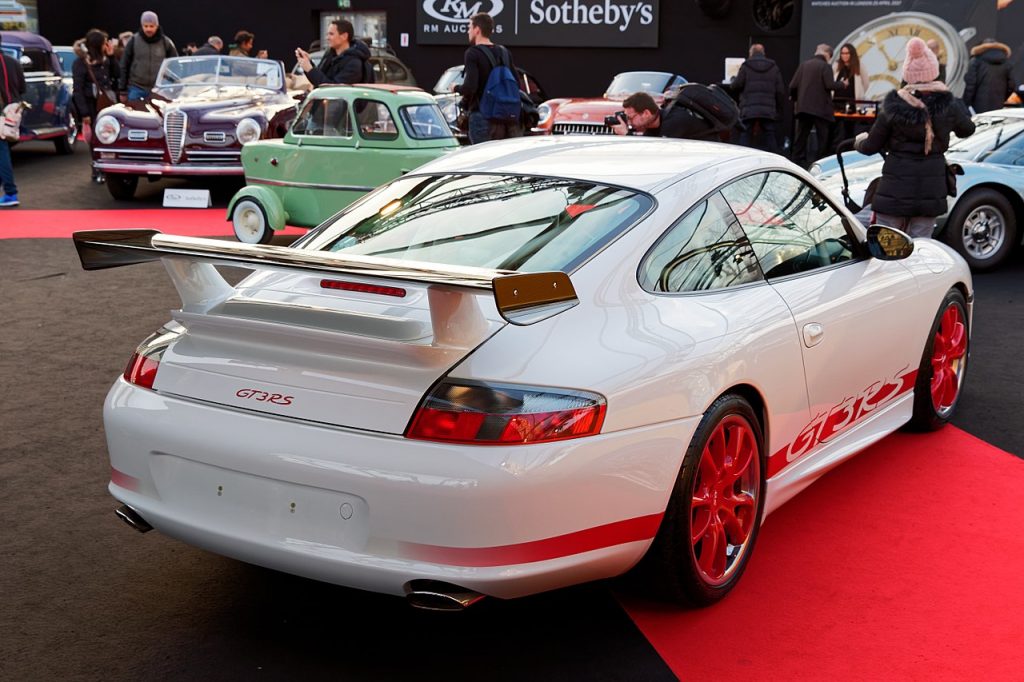 Da war mal ein Porsche 911 Carrera RS 2,7, im weit entfernten Jahr 1973. Der typische heutige Porsche-Käufer war damals noch nicht geboren. Der Carrera RS war etwas ganz Außergewöhnliches, und deshalb zitiert ihn Porsche gerne – immer wieder, und jedes Mal ist es vermeintlich das erste Mal. 2003 auch, da erschien der erste GT3 RS der damaligen Generation 996/II, und weil der Kunde zur „Heritage“ verpflichtet wurde, konnte er das Auto ausschließlich in genau jener Farbe bestellen, die den seligen Carrera RS 2.7 berühmt machte: Der größte Teil der 1580 Exemplare mit dem legendären Entenbürzel war in Grandprixweiß lackiert, und sie trugen veritable Farbenspiele. Die Schriftzüge an den Flanken, die so genannten Donauwellen, gab es in Rotorange, Blau, Grün und selten in Schwarz, und passend dazu wurden die Fuchs-Felgen lackiert. Es gab davon eine Touring- und eine Sportversion; letztere trug farblich passende Klebestreifen auf den Stoßfängern anstelle der schwarzen Gummi-Stoßleisten. Das Design des 911 Carrera RS 2,7 in Sportversion nahm Porsche zum Vorbild für den 2002er GT3 RS: weißer Karosserielack, in Rotorange die „Donauwellen“, etwas abgewandelt mit „GT3 RS“- statt mit „Carrera“-Schriftzug, an den Front- und Heckschürzen farblich passende Streifen und natürlich die Felgen ebenfalls in Rotorange. Nein, keine klassischen Füchse und auch nichts, was das kultige Fuchs-Design auch nur halbwegs zitiert, aber immerhin Rotorange mit silbernem Felgenaußenrand. Es handelt sich um die speziell für diese GT3-RS-Generation geschaffenen 18-Zoll-Serienfelgen.