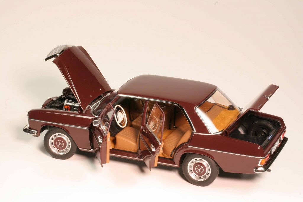 Norev 183778 Mercedes 200 W115 1968 dunkelrotbraun. Fertigmodell Zinkdruckguss, Maßstab 1:18. UVP 99,95 Euro.
