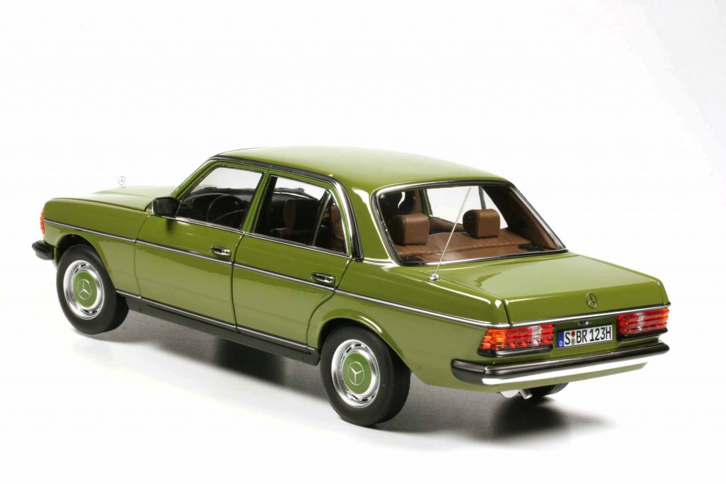 Norev B6 604 0721 (Mercedes-Bestellnummer) Mercedes 200 W123 1980 agavengrün. Fertigmodell Zinkdruckguss, Maßstab 1:18. UVP bei Mercedes 120 Euro.