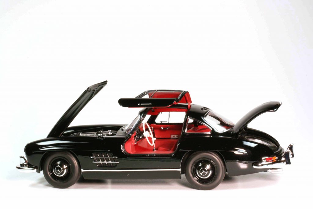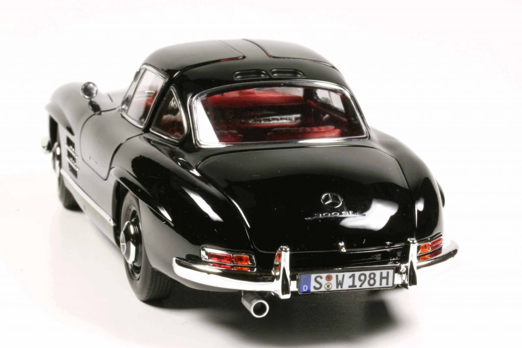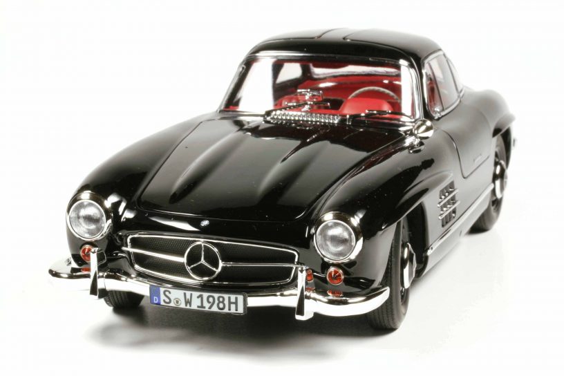 Norev B6 604 0722 (Mercedes-Bestellnummer) Mercedes 300 SL W198/I Coupé 1954 schwarz. Fertigmodell Zinkdruckguss, Maßstab 1:18. UVP 120 Euro. Erhältlich ausschließlich über die Mercedes-Accessoire-Schiene.