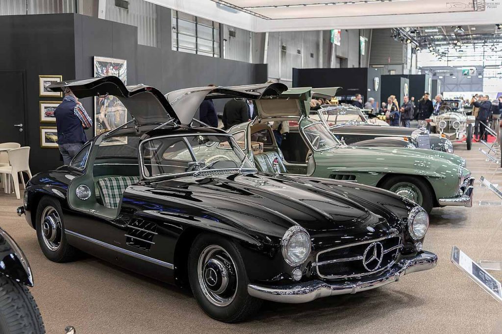 Ist ein schwarzer Flügeltürer zeitgenössisch stereotyp oder ist er elegant? Warum ist er schwarz? Weil es seinem Eigentümer gefällt? Weil er nicht silbern sein soll? Weil Autos früher schwarz waren? Wie viele 300 SL waren schwarz?