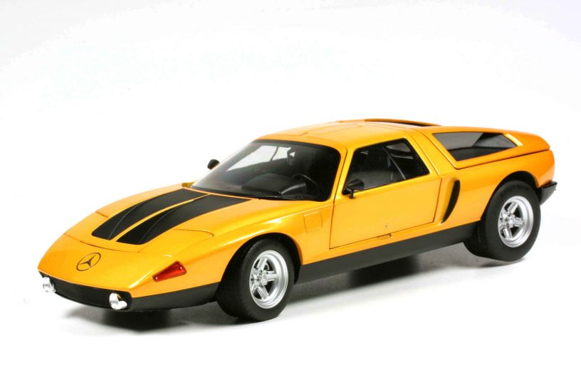 Surrealistische Traumwagen waren sie alle drei, aber dem Mercedes wurde allgemein am ehesten eine Serientauglichkeit zugetraut. Deswegen wurden auch Blankoschecks für ihn unterschrieben, die Daimler-Benz nie einlösen konnte. Unter den Dreien ging der C111 eindeutig als Sieger hervor. Davon deuten bis heute unzählige Spielzeug- und Modellautos – zeitgenössisch gab es vom Modulo nur 43er von Politoys und Pilen, einen 32er von Mercury und einen kleinen Corgi Juniors, vom Opel CD sogar nur eine Miniatur, von Politoys in 1:43. Die kleinen Jungs und die erwachsenen Männer waren vom C111 geradezu hingerissen – zunächst, weil er von Daimler-Benz kam, erzsolide und erzkonservativ, technisch innovativ, aber mitnichten mutig-revolutionär. Niemand hätte Mercedes einen solchen Wagen zugetraut, aber jeder verband mit ihm die positiven Mercedes-Sekundärtugenden. Dann, weil er einen Wankelmotor trug. Er galt in der Zeit zwischen 1967 (Debüt NSU Ro 80) und 1973/74 (Beginn Ölkrise und automobiles Effizienzdenken) als Technologie der Zukunft, als überlegener Ersatz für den Ottomotor. Und dann, weil er ein hinreißendes Design trägt, das noch heute fasziniert. Es ist nicht auf einen Stilisten zurückzuführen, man kann nicht sagen: „Er war es, der den C111 entwarf!“ Der Ur-C111, der so genannte Hobel, hatte letztlich gar kein Design, sondern nur eine ungehobelte Hülle um seine Technik. Der C111-I und -II, in letzterer Form der C111 allgemein in Erinnerung geblieben ist und den Norev nun bringt, wurde im Team um den Mercedes-Stilisten Josef Gallitzendörfer gezeichnet, der neu ins Team gekommene Bruno Sacco koordinierte die Karosserieentwicklung. Und zur Berühmtheit trug natürlich auch die schillernde Lackierung in Orangemetallic bei, damals etwas Unerhörtes. Die Bezeichnung lautet Weißherbst, ist dem Weinbau entliehen und wurde von der BASF-Tochter Glasurit angemischt. Die Öffentlichkeit sah im C111-II den legitimen Nachfolger des 300 Flügeltüren-SL, traute Daimler-Benz zu, den Wagen zur Serienreife zu entwickeln und Deutschland in den Genuss eines 300-km/h-Autos zu bringen. In Autoquartetten stach der C111 alle aus – nur nicht im Hubraum, denn der ist bei Wankelmütigen bekanntlich sehr klein. Wo keine Kolben nervös auf und ab zappeln, gibt es auch keinen Raum, in denen sich diese bewegen, also heben und senken, können (denn daher kommt ja die Bezeichnung „Hubraum“).