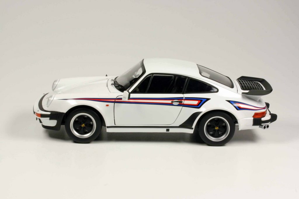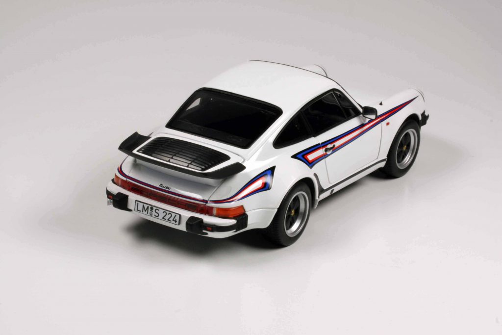 Norev 187668 Porsche 911 Turbo 3,3 Coupé 1984 im Martini-Look. Fertigmodell Zinkdruckguss, Maßstab 1:18. UVP 75 Euro.