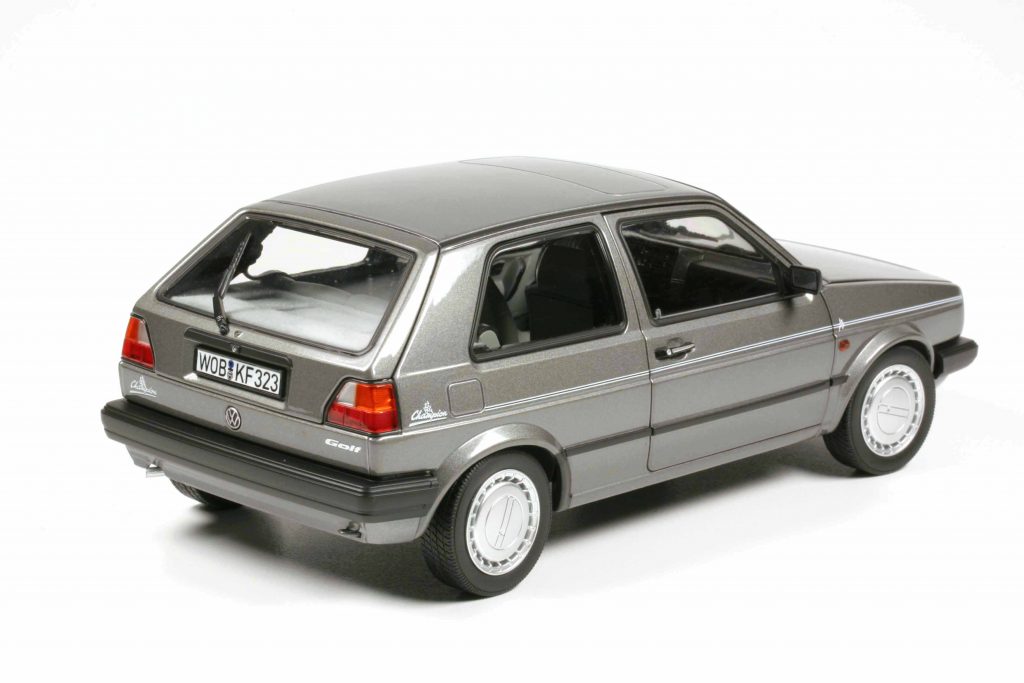 Wieder mal ein Sondergolf. Sondergölfe wecken Erinnerungen, teilweise verblasste Erinnerungen aus der Kindheit. Man saß in ihnen, man sah sie auf der Straße. Man maß ihnen nicht unbedingt große Bedeutung zu. Sondergölfe gab es viele. Eigentlich gab es stets welche. Der Golf II Champion ist in der Erinnerung hingegen ein schwarzes Loch. Nie gehört! Zumindest in Deutschland nicht. Dabei klang Champion gut in der Zeit, als die Welt im Formel-1-Fieber war und Ayrton Senna anhimmelte. Überdies war der Golf Champion ein recht gut ausgestattetes Exemplar, und in der von Norev gewählten Farbe Perlgraumetallic Z3 sieht er richtig edel aus.