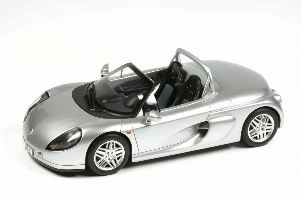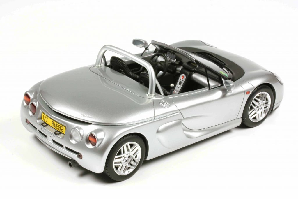 Ottomobile OT1142 Renault Sport Spider 1995 silbermetallic. Fertigmodell Resine, Maßstab 1:18. Auflage 999 Exemplare. Preis ca. 100 Euro.