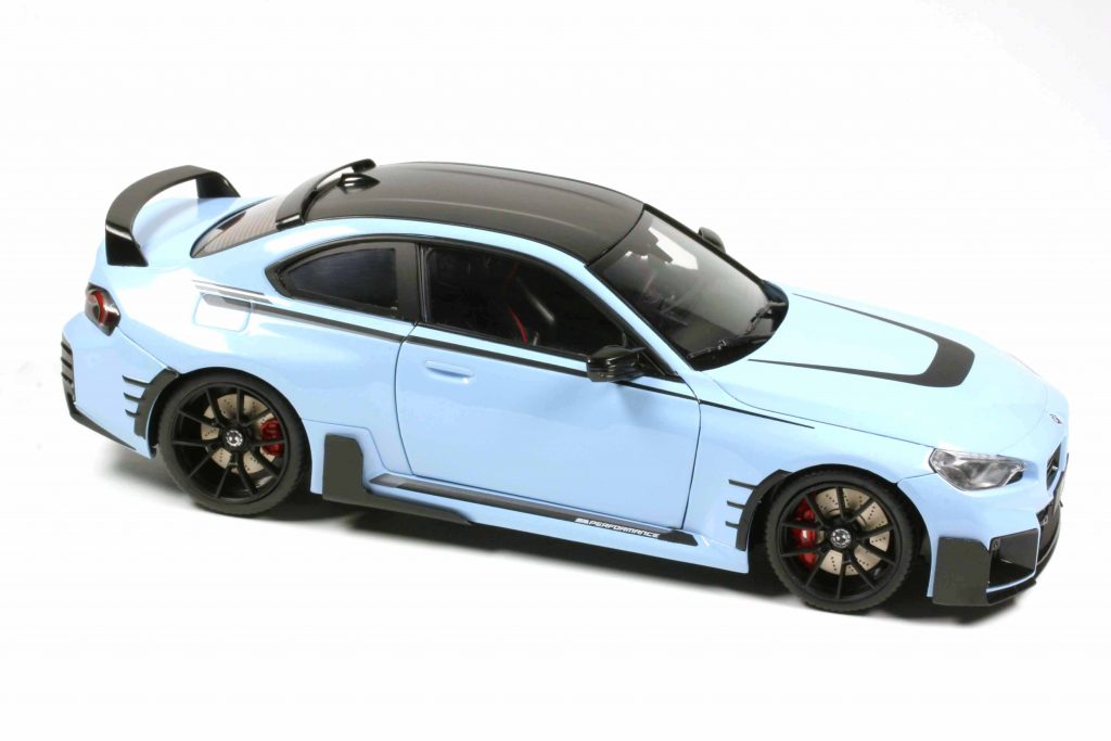 Solido S1812901 BMW M2 mit Performance-Teilen 2024 hellblau und S1812902 dito rotmetallic. Fertigmodelle Zinkdruckguss, Maßstab 1:18. UVP 49,95 Euro.