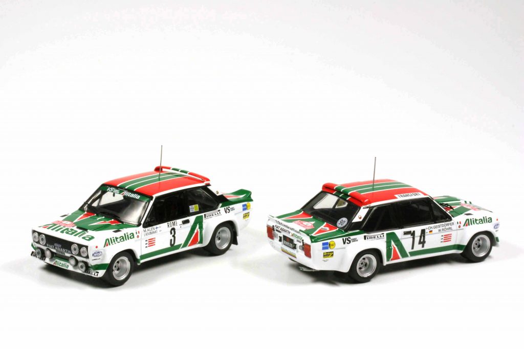Ixo RAC445A Fiat Ritmo 75 Abarth Gruppe 2 Rallye Monte Carlo 1979 (Eklund/Sylvan, # 7), RAC445A Fiat Abarth 131 Rally Rallye Monte carlo 1979 (Röhrl/Geistdörfer), RAC445B dito (Bettega/Perissinot, # 20), RAC446B dito (Alén/, # 3). Fertigmodelle Zinkdruckguss, Maßstab 1:43. UVP je 39,95 Euro.