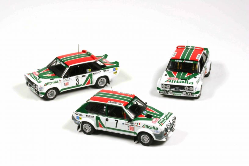In den italienischen Nationalfarben: Ixo bringt den Fiat Ritmo als Monte-Carlo-Teilnehmer, gesponsert von Alitalia. Farben, die dem Stratos und dem Fiat 131 Abarth Rally stehen, kleiden auch den Ritmo gut. Und deshalb bringt Ixo den 131er Rally noch dazu, auch im Doppelpack.