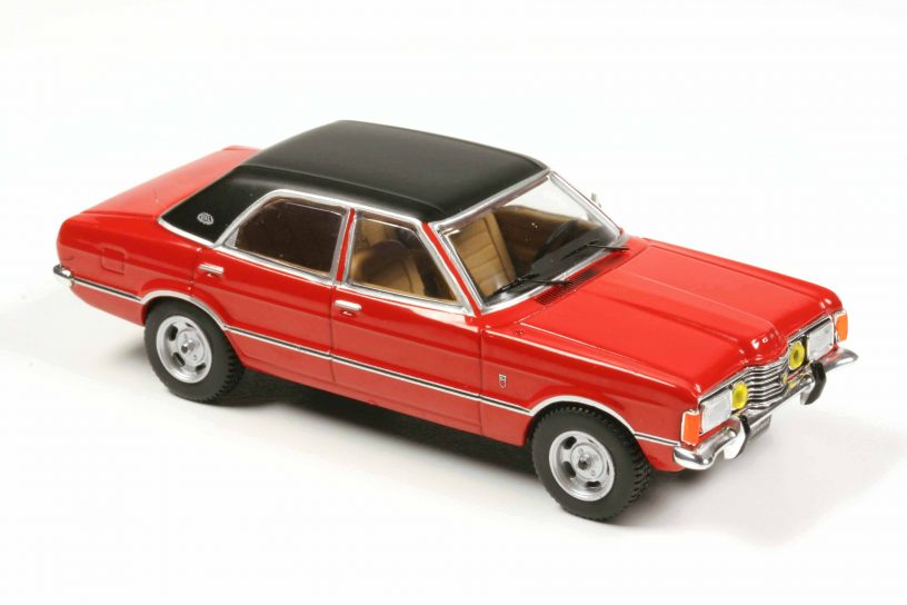Ixo CLC593N Ford Taunus TC1 GXL Viertürer rot. Fertigmodell Zinkdruckguss, Maßstab 1:43. UVP 24,95 Euro.