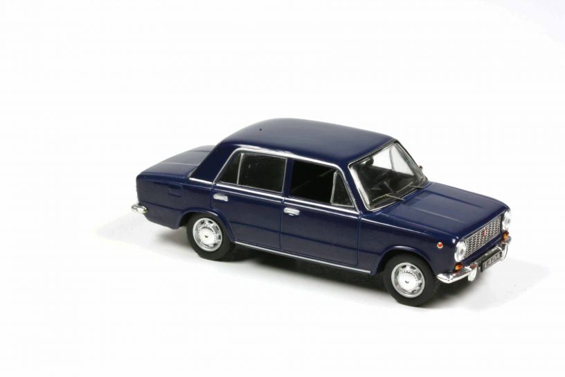 Die Ixo-Miniatur, sattsam bekannt als Fachhandelsmodell in unterschiedlichen Farben und aus nahezu jeder Kioskserie, die in den ehemaligen Ostblock-Staaten lief, hat Stoßstangenhörner. Das Modell ist zwar etwas einfach gestrickt, aber formal tadellos. In neuer Farbe trägt der Lada das typische Blau LAD 456, in Deutschland „Stahlblau“ genannt, im Export in englischsprachige Länder „Midnight Blue“. Die Drucke, vor allem das Lada-Signet im Grill, sind gut, auf dem Kennzeichen steht „Lada“ – was ein bisschen obskur ist, denn im Ostblock und somit in der DDR hieß der Wagen damals nicht so, sondern Shiguli (Жигули). Das ist der Name einer 75 Kilometer langen Hügelkette am rechten Wolgaufer. Für den Export taugte Shiguli nicht, es erinnert an Gigolo, also an einen männlichen Prostituierten (und im Ungarischen ist es noch schlimmer!). Darum wurde der Name Shiguli im Export ab 1974 durch Lada ersetzt. Doch „Shiguli“ setzte sich bei der DDR-Bevölkerung fest. Daran hat sich bis heute nichts geändert. Der alte Lada, der auf dem Fiat 124 basiert, ist in Deutschlands Osten nach wie vor der „Shiguli“.