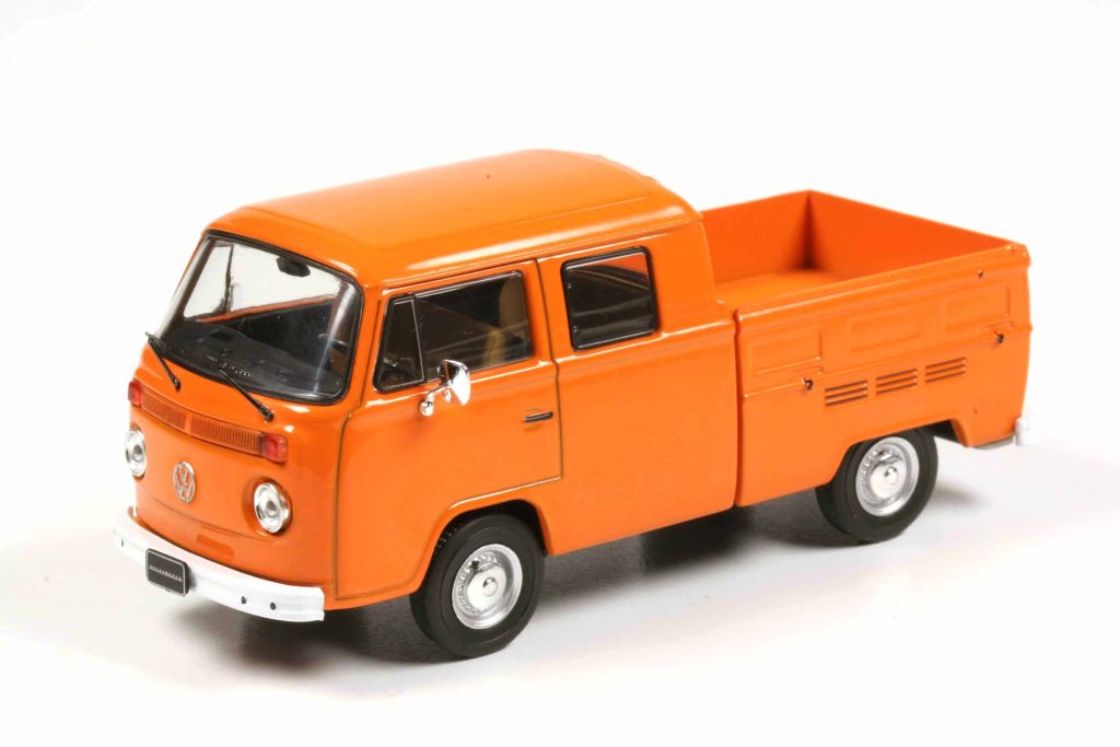 Zugegeben, ein GTI (jedweder Art) mag attraktiver sein als ein Transporter ohne jeden Freizeitwert, eine schnöde Doppelkabine. Darin wird ein Bautrupp zum Arbeitsplatz transportiert, und in die Pritsche wird Sand geschüttet oder Gartenbaugeräte werden darin transportiert. Andererseits: VW Bulli geht immer, T2 erst recht, und eine T2b Doppelkabine hatten wir schon lange nicht mehr in 1:43. Das Minichamps-Modell erschien vor genau 20 Jahren und hat es noch nicht zur Maxichamps-Wiederauflage gebracht, das Schuco-Modell ist ein T2a und die Ixo-T2b-Doppelkabine gab es bislang nie im Fachhandel – jedoch in etlichen brasilianischen Partwork-Serien. Nun kommt das Modell erstmals in den Fachhandel, und es ist ein Brasilianer. Kleinigkeiten unterscheiden es von der Hannoveraner Doppelkabine, aber das spielt keine Rolle. Dass Ixo als Baujahr 1982 angibt, ist ebenfalls ein Hinweis auf die lateinamerikanische Provenienz, wo der T2, nunmehr als T2c bezeichnet, bis 2013 produziert wurde (aber nicht bis zuletzt als Doppelkabiner).