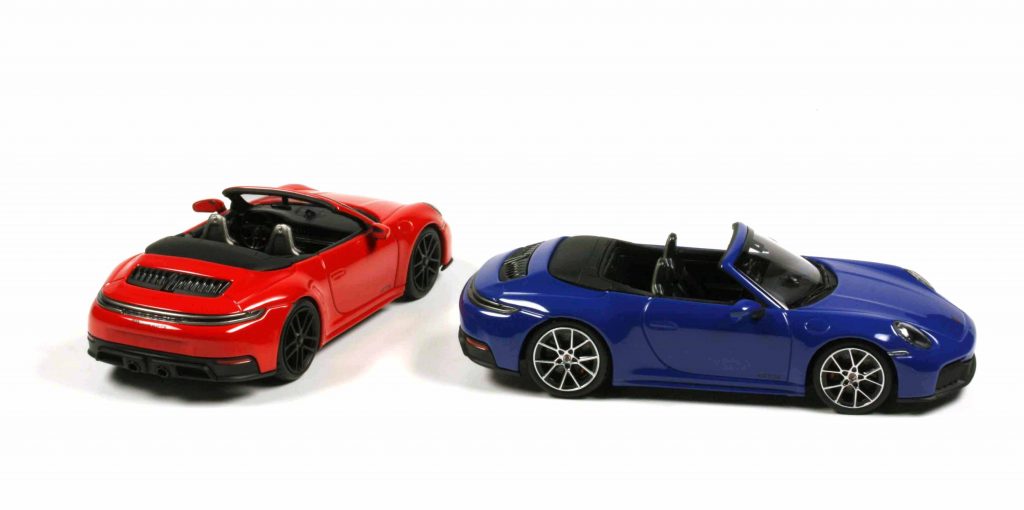 Die Beiden sind der Vorgeschmack, weitgehend serienmäßig, unspektakulär. Wichtig sind sie für jenen Sammler, der nicht warten kann und alles Neue sofort braucht. Mit Sicherheit wird Minichamps auch beim 992/II ein Farbfeuerwerk zünden und so manche Paint-to-Sample-Lackierung bringen. Das Cabriolet ist eben der Schrittmacher für die neue Generation, die peu-à-peu in weiteren Karosserie- und Ausstattungsversionen kommen wird.