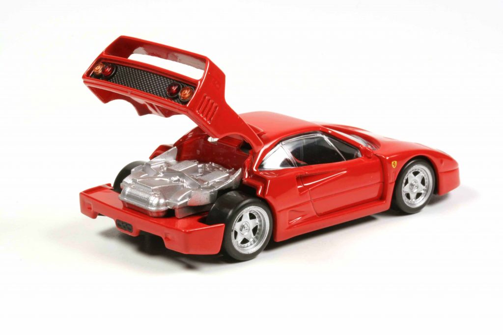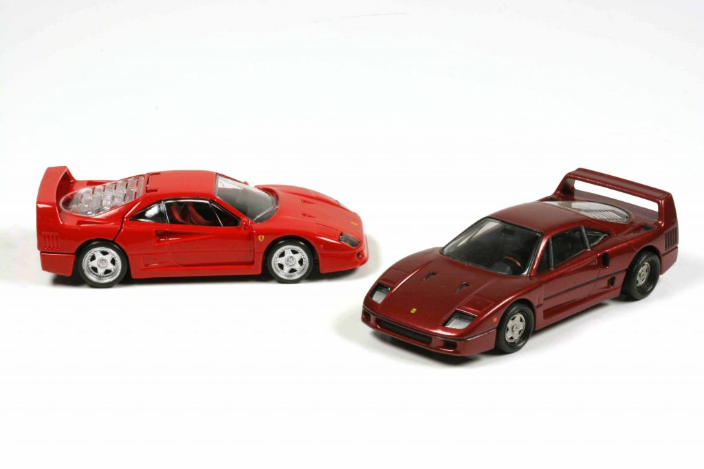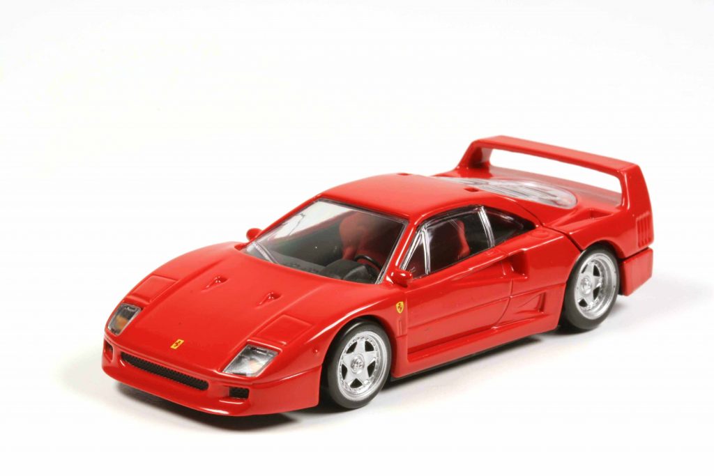 Zweifünfundneunzig hat er gekostet. Und zwar D-Mark! Also 2,95 D-Mark. Der Ferrari F40 von Bburago in 1:43 im Jahre 1988, also stante pede nachdem das Original präsentiert wurde. Die F40-Fraktion stürzte sich darauf, und der italienische Kleinserienhersteller Tron beeilte sich, vorbildgerechte Felgen für ihn zu liefern. Was Bburago an den F40 klemmte, war zwar auch rund und rollte schnell, hatte aber mit originalen F40-Felgen (die bekannten 5-Speichen-Speedline-Felgen mit Zentralverschluss) kaum etwas gemein. Tron nahm rund 10 D-Mark für die Felgen, und dann war noch eine F40-Neulackierung fällig, um ein brauchbares Modell zu erschaffen. Denn mit der Lackqualität nahm es Bburago nicht so genau – wie auch, bei einem derartigen Verkaufspreis!