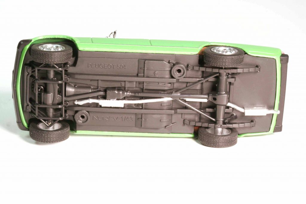 Norev hat nicht einfach nur einen Peugeot 504 Break etwas höher gelegt. Norev hat dieses Modell komplett neu konstruiert, als Dangel. Optisch unterscheiden ihn vom Serienkombi die breit ausgestellten vorderen Kotflügel, die beim Modell formintegrierter Bestandteil der Karosserie sind. Dann steht das Ding verdammt hoch auf den Rädern, weit mehr Luft unterm Bauch ist als beim Serien-Peugeot, andere Felgen. Richtig schön ist das Norev-Modell, wenn man es aufs Dach legt und am Bauch krault: Dangel hat den selbst tragend konstruierten Peugeot auf einen zusätzlichen Rahmen geschraubt, was ihn hoch stellt und seinem Rückgrat Stabilität verleiht. Das hat Norev wunderschön wiedergegeben, auch die massiven hinteren Blattfedern und den Schutz für die vordere Radaufhängung. Ebenfalls gut zu sehen: Vom Getriebe gehen zwei Kardanwellen ab, eine zur Hinter- und eine zur Vorderachse. Darüber hinaus ist der Norev-Peugeot in sehr zeitgenössischem Spät-70er-Jahre-hellgrünmetallic (Peugeot nannte es Goldgrünmetallic 510) lackiert, verfügt über ein super detailliertes, mehrfarbiges Interieur und schöne Detaillierung. Das Modell stellt die Ausstattungsvariante GR dar, einen normalen Kombi. Ebenfalls als Dangel gab es den Familiale mit einer dritten Rücksitzbank für die lieben Kleinen. Für technikbegeisterte Modellautosammler ist dieser Dangel-Peugeot schlichtweg ein Muss. Und wer Henry Dangel bisher nicht kannte, hat nun einen guten Grund, sich ihm zu nähern.