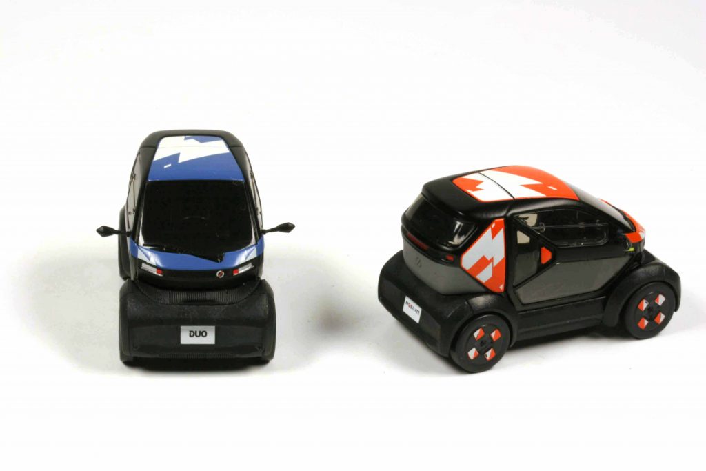 Norev 519220 (Renault) Mobilize Duo 2024 schwarz/orange, 519222 dito schwarz/blau, 519221 (Renault) Mobilize Bento 2024 schwarz/grau. Fertigmodelle Zinkdruckguss, Maßstab 1:43. UVP je 30 Euro.