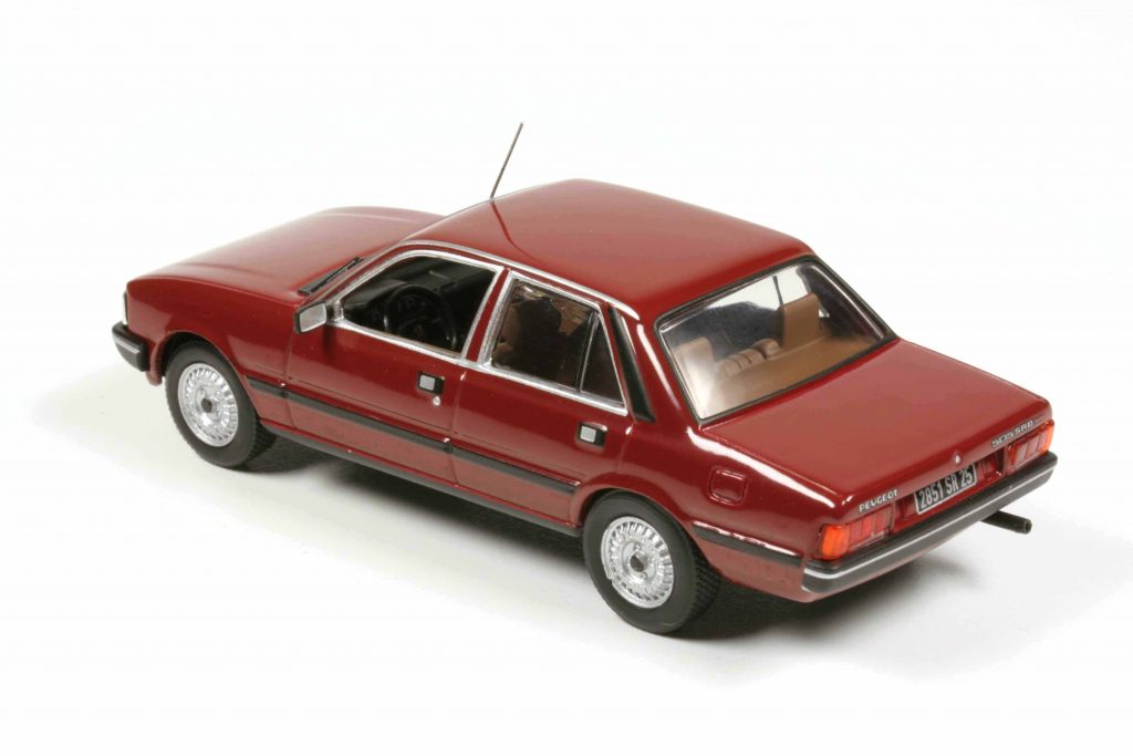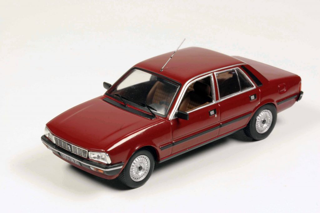 Das zweite Odeon-Modell, das den Weg auf den schwarzen Schreibtisch fand, ist der Peugeot 505, ein Dauerbrenner im Ixo-Programm, auch aus Kioskserien, sogar aus südamerikanischen. Als Odeon-Modell erschien er in dunklem Bordeauxrot als 505 SRD Turbo, also als sportlicher Diesel mit Leichtmetallfelgen. Auch hier merkt der Betrachter, dass Momaco die beste Ausstattungslinie bei Sonic/Ixo auswählte (Sonic bietet deren drei an), das Modell verfügt über Fotoätz-Scheibenwischer und eine hauchfeine Dachantenne sowie hohen Bedruckungskomfort, mehrfarbige Rückleuchten, eingesetzte vordere Blinker-Standlicht-Einheit. Der Innenraum ist braun lackiert (also nicht „nacktes“ Plastik im Rohzustand), Armaturenbrett und Lenkrad sind schwarz. Der Ixo Peugeot 505 ist ein (ur-)altbekanntes Modell, bestimmt seit 25 Jahren am Markt, aber immer wieder schön, und in der Machart für Momaco besonders schön.