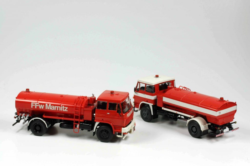 Zwei Versionen des Wassertankwagens bietet Premium Classixxs an, einen neutralen rot lackierten Wagen mit weißem Dach und ebensolchen Streifen und einen spezifischen der Freiwilligen Feuerwehr Marnitz in Mecklenburg-Vorpommern, ganz in Rot. Dieses Tanklöschfahrzeug hat ein konkret existentes Vorbild, war ursprünglich ein Sprengwagen der Autobahnmeisterei und kam 1999 zur Marnitzer Feuerwehr. Es ist seit 2015 außer Betrieb. Der Pritschenwagen ist neutral gehalten, in typischem Ostblock-Bunt: Fahrerhaus-Unterteil orange, -Oberteil dunkelgrün, abgetrennt von einem weißen Streifen, Felgen ebenfalls weiß, Stahlpritsche orange, Chassis hellgrau, Plane planengrau.
