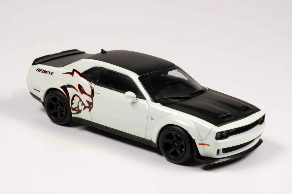 Solido S4310309 Dodge Challenger SRT Hellcat Redeye Widebody weiß/mattschwarz. Fertigmodell Zinkdruckguss, Maßstab 1:43. UVP 24,95 Euro.