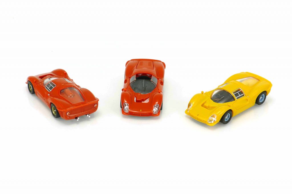 Brekina 22900 Ferrari 330 P3 Berlinetta 1966. Karosserie rot. IA schwarz. 22902 dito, gelb. 22901 dito Spyder, rot. UVP jeweils 19,95 €.