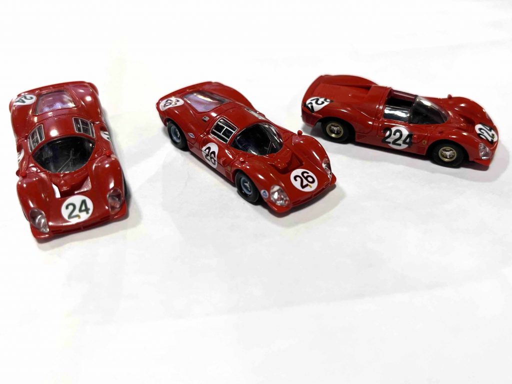Brekina macht den Ferrari 330 P3 in zwei Karosserievarianten, als geschlossene Berlinetta und als offenen Spyder. Die Premierenmodelle werden, abgesehen vom Ferrari-Logo auf der Fronthaube, unbedruckt ausgeliefert. Jedoch hat Brekina zur diesjährigen Spielwarenmesse viele Versionen mit Startnummern und in unterschiedlichen Farben angekündigt, Muster davon sind auf YouTube zu sehen. Caramini-online bereitet einen umfangreichen Bericht über die H0-Modelle der Ferrari 330 P3, 412P und 330 P4 vor, ein spannendes Thema. Die Scuderia Ferrari setzte den 330 P3 zum ersten Mal bei den 12 Stunden von Sebring im Jahr 1966 ein, das Fahrzeug mit den Fahrern Mike Parkes und Bob Bondurant fiel, an zweiter Stelle liegend, mit Getriebeschaden aus.