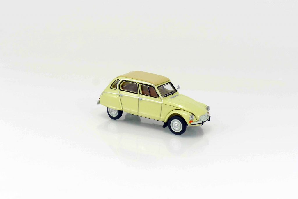 Ans andere Ende der Citroën-Verkaufspalette, zu den kleinen Zweizylindern: Die Citroën Dyane sollte die Lücke zwischen 2CV und Ami 6 schließen und sollte längerfristig den 2CV beerden. Letzteres gelang nicht, der 2CV überlebte die Dyane. Auch die Dyane liefert Brekina immer wieder in neuen Ausführungen, wir zeigen hier ein Modell mit geschlossenem Rolldach.