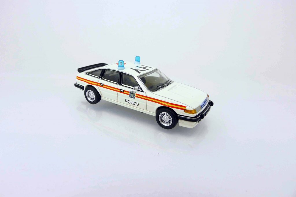 Schwimmen wir über den Ärmelkanal nach Großbritannien. Das Modell des Rover Vitesse SD1 haben wir in Caramini-online am 8. Juli 2025 als Siegerfahrzeug der DTM-Saison 1986 präsentiert. Nun sind die zivilen Fahrzeuge an der Reihe, die Brekina in der gleichen Qualität wie den Renntourenwagen in den H0-Maßstab verkleinert hat. Auch ein typisches britisches Polizeifahrzeug nach dem Vorbild der Metropolitan Police hat Brekina im Angebot. Die „Met“ ist die Polizeibehörde von Greater London (außer dem Stadtteil City of London) und hat ihren Sitz im New Scotland Yard in Westminster. Vorbildgerecht besitzt das Modell Rechtssteuerung, während die Miniaturen in Rot und Blaumetallic das Lenkrad auf der linken Seite haben. Der Rover Vitesse SD1 wurde von 1976 bis 1986 zunächst von British Leyland und später von der Austin Rover Group produziert. Das Kürzel „SD1“ steht dabei für „Special Division“ und die „1“ bedeutet die erste Entwicklung der eigenen Designabteilung.