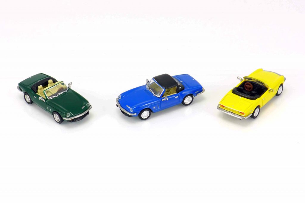 Vor allem im Sommer flitzen Triumph Spitfire auch auf Deutschlands Straßen umher, ein populärer Klassiker. Brekina zeichnet die letzte, ab 1974 gebaute Version, den Triumph Spitfire 1500 mit 1,5-Liter-Motor nach. Das Verdeck ist fest an der Karosserie angebracht, entweder auf- oder zugeklappt. Alle Modellvarianten von Brekina sind linksgesteuert, sehr schön zeigt sich das nachgebildete Holzlenkrad. Lobenswert ist, dass Brekina auch an die Freunde britischer Automobile denkt und sie mit wunderbaren Modellen beglückt.