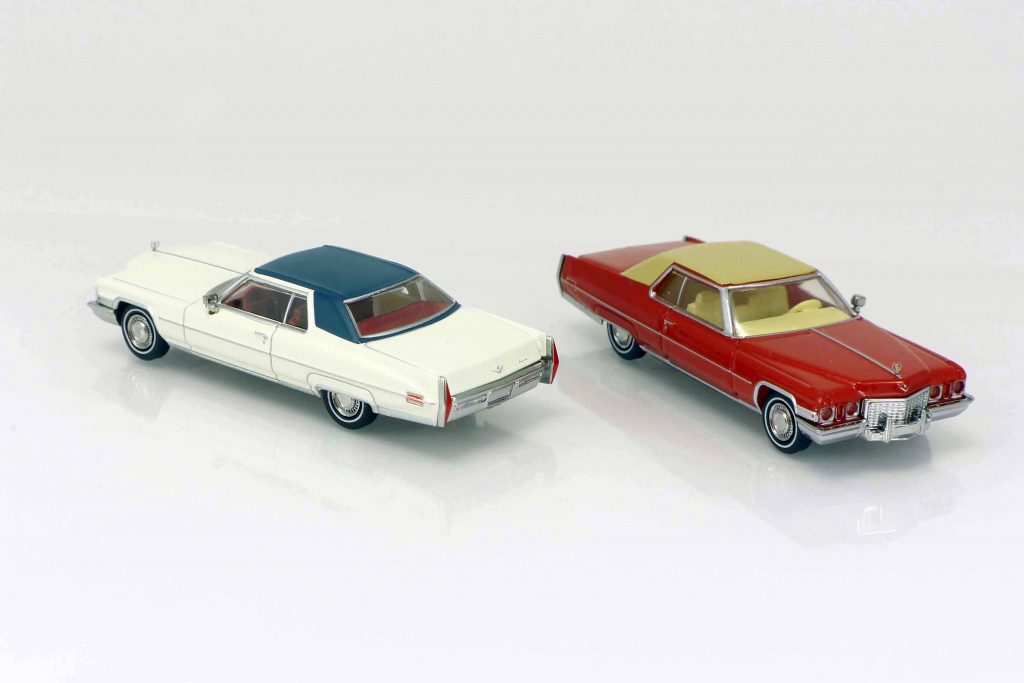 Beginnen wir mit der amerikanischen Automarke, die als Synonym für Luxus steht: Cadillac. Brekina widmet sich dem Cadillac DeVille Hardtop Coupé von 1972 aus der vierten Generation dieser ab 1959 eigenständigen Modellreihe des Automobilkonzerns General Motors. Zuvor war der DeVille eine besondere Ausstattungsvariante des Cadillac Series 62. Nicht nur im Original ist der Cadillac DeVille ein wahres Schlachtschiff, auch das Brekina-Modell widerspiegelt die imposante Größe. Brekina kann halt auch US-Fahrzeuge, und dies nahezu perfekt.