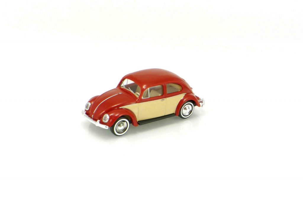 52968 VW 1200 Käfer 1953. Karosserie weinrot mit beigefarbenen Flanken. IA beige. UVP 20,99 €.