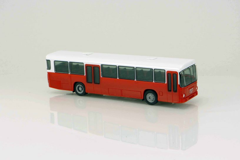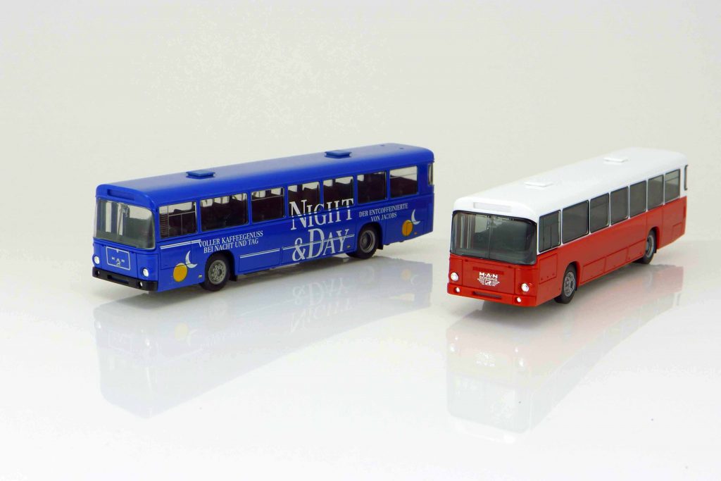 Nur wenige Jahre später kam der MAN SÜ 240 Überlandlinienbus auf den Markt. Zusammen mit dem Setra S 228 DT stellte der MAN Bus damals das absolute Nonplusultra bei den Busminiaturen dar, und das Modell überzeugt heute immer noch. Herpa liefert eine Neuauflage als MAN-Büssing SÜ 210 in den „Nürnberger“-Hausfarben und einem umfangreichen Ausschneidebogen mit verschiedenen Linienbeschriftungen. Der MAN-Büssing SÜ210 ist Bestandteil des Standardisierungsprogramms zur Erstellung der VÖV-Richtlinien bei der Gestaltung der Standardlinienbusse. Das Kürzel „SÜ“ stand dabei für Standardüberlandbus.