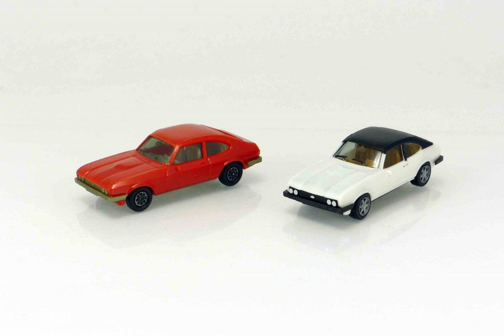 Ein echter Klassiker ist der Ford Capri III Ghia. Das Modell war Bestandteil des ersten Prospektblatts des Herpa-Automarkts von 1978 unter Katalognummer 2005 (Standard) und 3005 (metallic) mit der Bezeichnung „Ford Capri Ghia 3.0“. Seitdem haben die Dietenhofener Autobauer den Capri immer wieder in neuen Farben und Bedruckungen wiederaufgelegt, aus Normrädern wurden zweiteilige, vorbildgerechte Alus. Die aktuelle Version besitzt eine weiße Karosserie mit schwarzem Vinyldach, ein besonders im Vereinigten Königreich beliebtes Extra. Ab 1974 unterzog Ford den Capri einem umfangreichen Facelift mit neu gestalteter Karosserie und größeren Scheibenflächen, der Capri II. Vier Jahre später gab es dann das Facelift vom Facelift, und das Vorbild des Herpa-Modells entstand, zwar nur inoffiziell als Ford Capri III tituliert, aber so und nicht anders ging er in die Geschichte ein. Auffällige Änderungen betrafen die Doppelscheinwerfer, über die die Motorhaube gezogen wurde und die umgreifenden Stoßstangen. Zusätzlich erhielt die Frontschürze einen kleinen Spoiler. Auch Herpa kann mittlerweile auf eine 47-jährige Tradition im Modellautokosmos zurückblicken – auch wenn für den „etablierten“ 1:87-Sammler Herpa nach wie vor zu den Nachgeborenen, ja, zu den Neuen zählt. Geschichte, das hat aus deren Sicht nur ein Hersteller, und zwar Wiking.