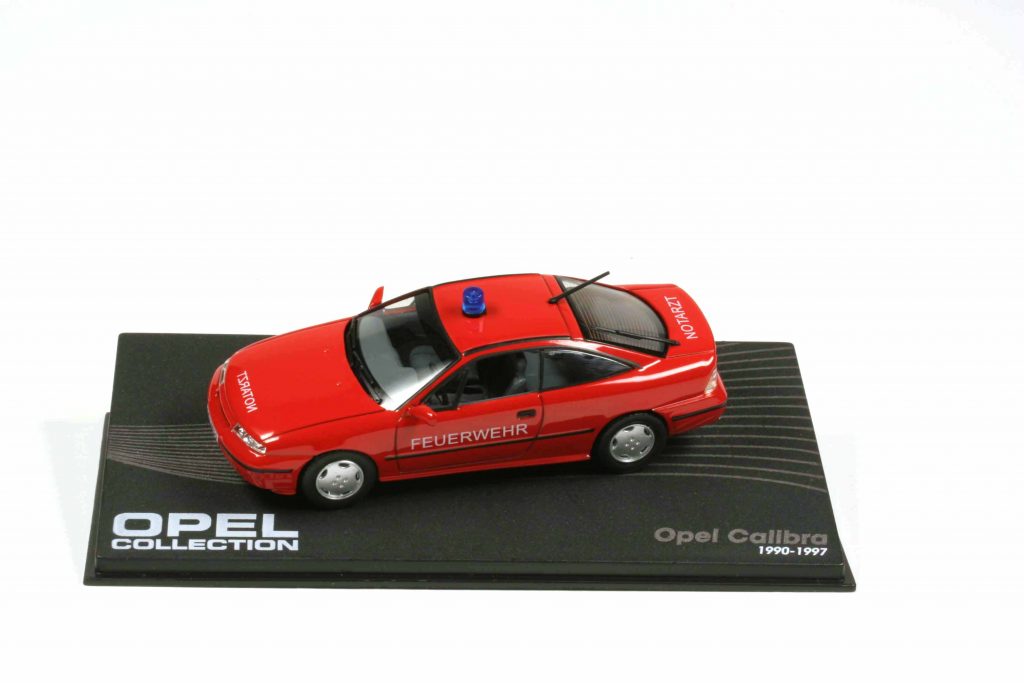 Erinnern wir uns an alte, vorpubertäre Tage: Gama hatte einen Opel GT im Programm, lackiert in Weiß mit dunkelgrünen Türen und verkaufte ihn den Kindern als Autobahn-Streifenwagen. Gab es ihn tatsächlich? Achim Schmidt gibt in seinem Buch „Polizeifahrzeuge in Deutschland – Opel seit 1950“ (Stuttgart, Motorbuch-Verlag 2009) die eindeutige Antwort: Das Modellauto hat kein reales Vorbild. Dann Rietze, Maßstab 1:87: Ein Opel Calibra als Feuerwehr-Notarztfahrzeug. Auch hier gab es die Diskussion, ob das Fahrzeug ein reales Vorbild hatte. Die Antwort lautet nein.