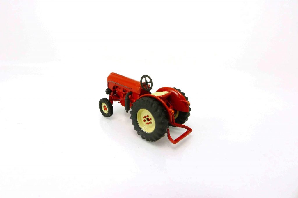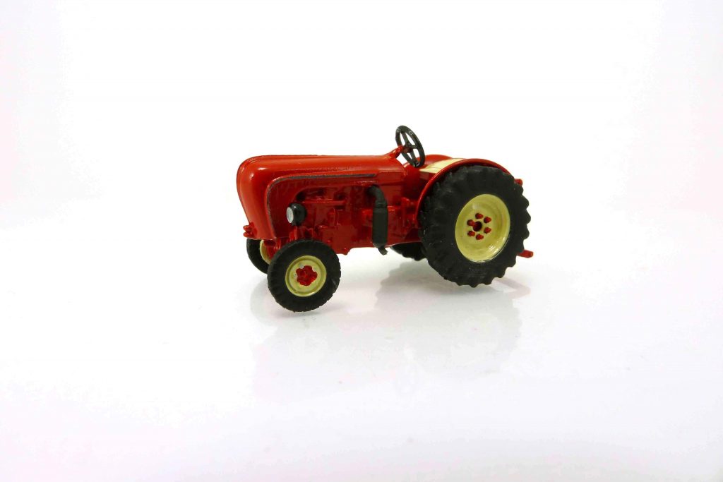 Kussmaul-Modellbau Porsche Diesel Super S308 Schmalspur-Traktor. Aufbau rot. Anbauteile schwarz. Felgen cremeweiß. SLA-Druck. UVP 34,90 €.