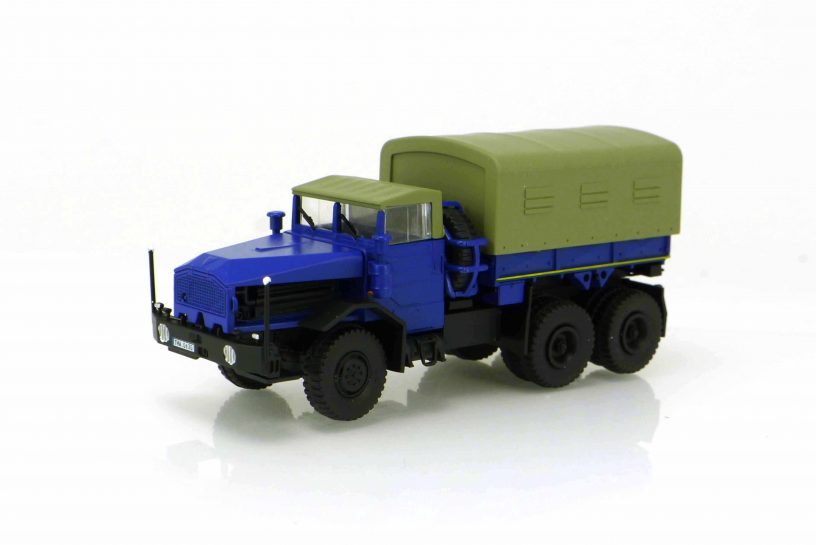 Auch die Bundeswehr setzt den Unimog U 5023 ein, ein hochgeländegängiges Fahrzeug. Dabei verwendet sie den Unimog U 5023 oft als Wechselbrückenfahrzeug. Es können neben einer Wechselpritsche auch ISO-Container, eine Fernmeldekabine oder eine Gerätepalette aufgeladen werden. Ausgerüstet ist der Unimog mit einem Euro-6-Motor mit 231 PS, mit dem 89 km/h erreicht werden können. Bemerkenswert sind die kleinen Scheinwerfer in der Stoßstange. AAA-Collect hat ein perfektes Modell auf die vier Räder gestellt, hauchdünn lackiert und vorbildgerecht bedruckt. Besonders die Tarnlackierung ist bestens gelungen.