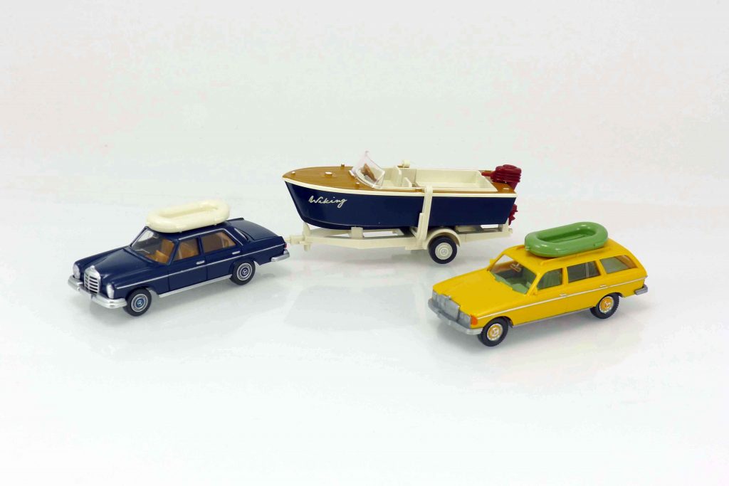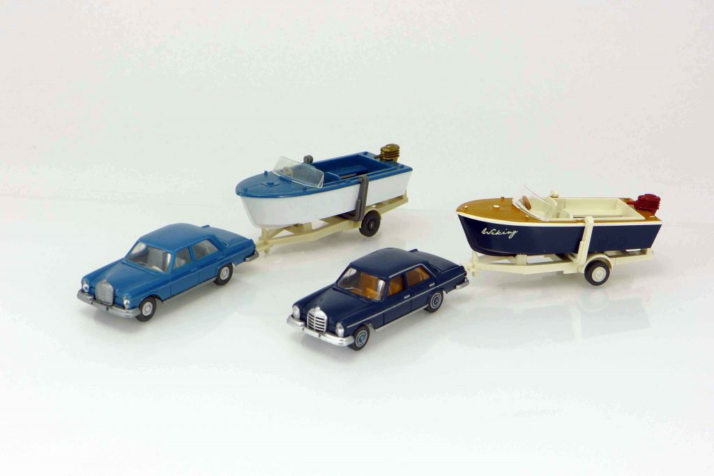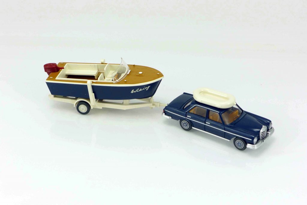 Wiking-Modelle mit angehängtem Motorboot gab schon im Jahr 1963 in Form einer Geschenkpackung mit dem Mercedes 300d als Zugfahrzeug, ab 1974 mit dem Chevrolet Malibu. Verpackt waren diese Gespanne in einer Hartplastikbox. Michi Bloeßl hatte den Gedanken, diese Verpackung auch zu verwenden, aber das hätte das Modell zusätzlich verteuert. In den Jahren 2003 und 2004 lieferte Wiking selbst ein Mercedes 250 SE Coupé W111 mit angehängtem Motorboot.