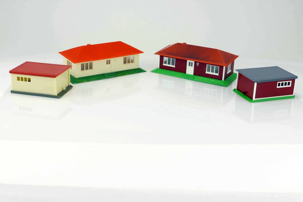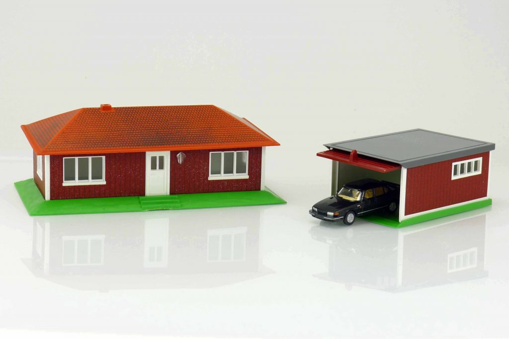 Das Landhaus: Diese Überraschung ist Wiking gelungen. Das legendäre Landhaus einschließlich Garage mit Klapptor erscheint in einer sehr attraktiven Ausführung als Schwedenhaus. Jeder Schwedenkrimikonsument im Fernsehen kennt die meist in Rotfarbtönen gestrichenen Holzhäuser, die das Bild vieler Ortschaften in Schweden prägen. Durch eine geschickte Bedruckung bringt Wiking das Erscheinungsbild dieser Häuser mit weißen Fenstern und Türen sowie Gebäudeecken perfekt rüber. Eine super Idee. Das historische Landhaus bot Wiking von 1948 bis 1960 an, ein langer Zeitraum, aber so richtig beliebt war es nicht bei den Wiking-Sammlern. Im Rahmen der Serie „Meilensteine der Wiking-Geschichte“ gab es Neuauflagen als Traumhaus im Bau (2013) sowie als Bürogebäude der ASG-Spedition (2018).