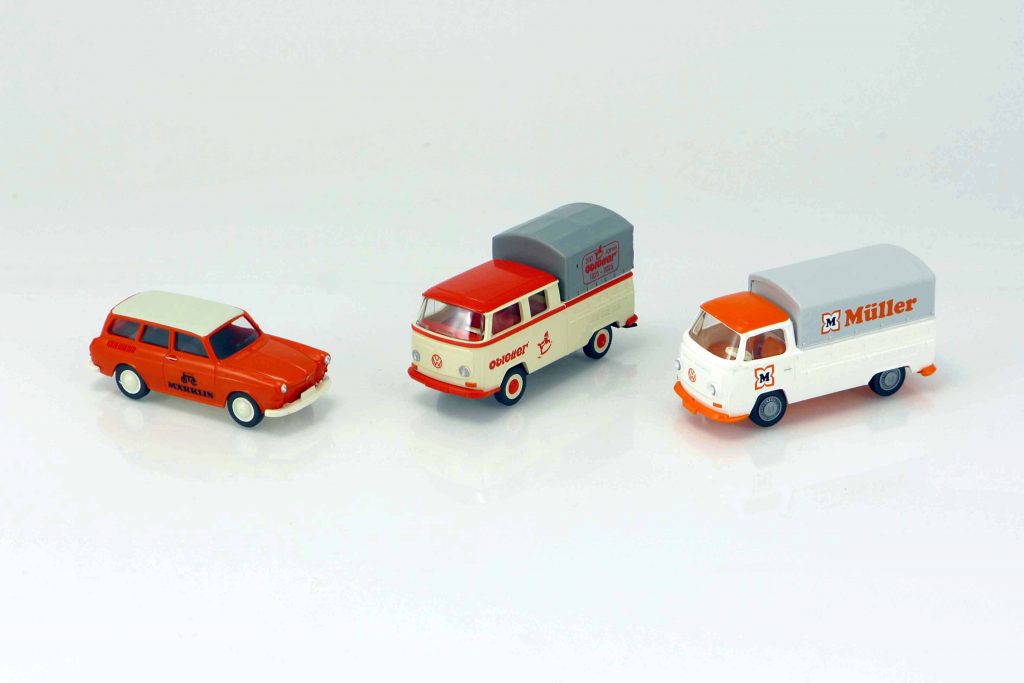 Drei neue Sondermodelle sind in den Monaten August und September erschienen – zumindest bis jetzt. Das Trio zeichnet Vorbilder von Volkswagen aus den Endsechzigern nach, also die letzte Hochphase der luftgekühlt Boxernden. Eine Gemeinsamkeit der drei Modelle stellt die farbliche Gestaltung in Weiß- und Rottönungen dar. Den VW 1600 Variant in den Farben des Modellbahnherstellers Märklin gibt es zunächst exklusive auf der Internationalen Modellbahn Ausstellung in Göppingen, die beiden Modelle von Müller und deren Tochterfirma Obletter sind in den Filialen und online erhältlich.