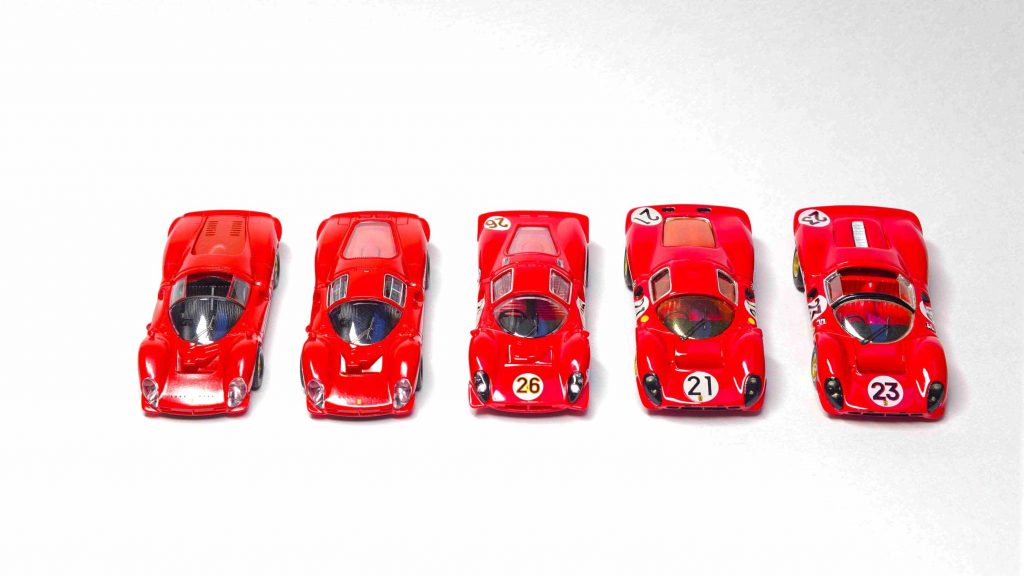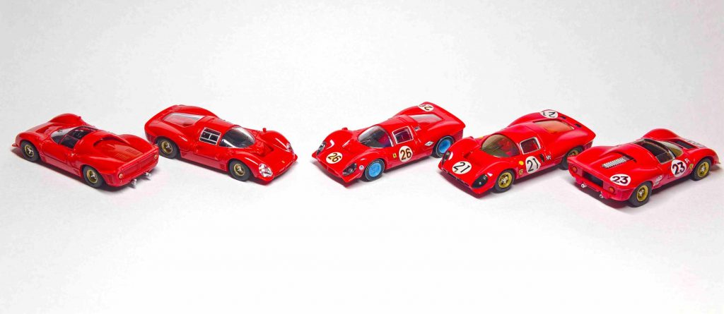 Schauen wir uns jetzt, mit dem Wissen über die Originale und deren gestalterischen Unterschieden, das modellbauerische Angebot der 1966er und 1967er Ferrari Prototypen im Maßstab 1:87 an.