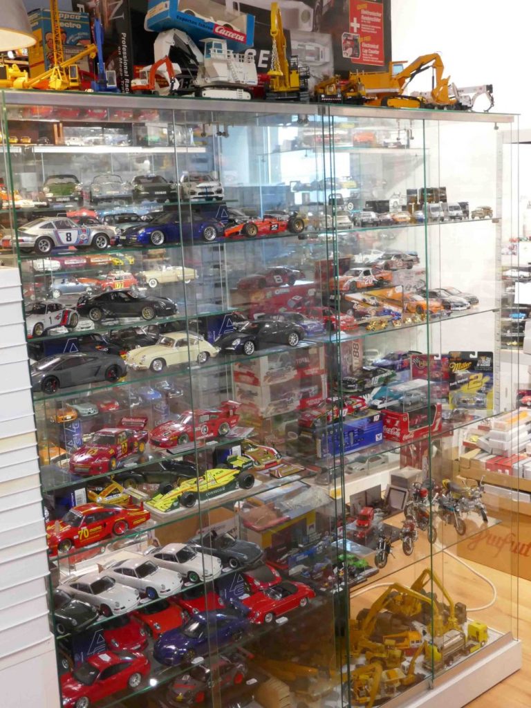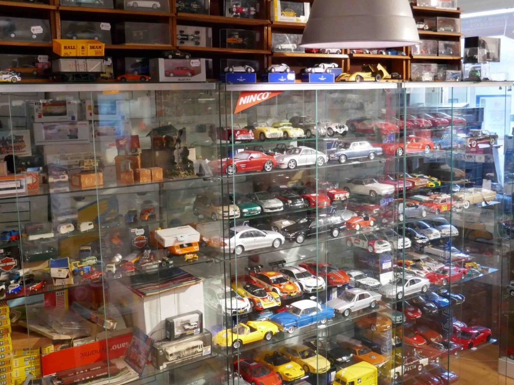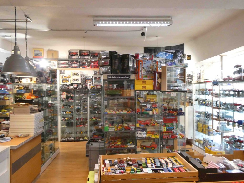 Der Weg des Modellautosammlers führt in die Bahnhofstraße 3, zum Modellautogeschäft „MR’s Modellautos“ von Michael Rinke, einem engagierten Händler mit viel Hintergrundwissen. In seinem Hauptgeschäft bietet MR’s so ziemlich alles an, was an Modellautoneuheiten auf den Markt kommt, und dies quer durch alle Maßstäbe. Aber unser Sammler interessiert sich für historische Modelle, er sucht immer etwas, um seine (viel zu) umfangreiche Sammlung zu erweitern. Für solche Kunden öffnet Michael Rinke immer samstags ein zweites Ladengeschäft, nur wenige Meter vom Hauptladen entfernt. Der Schritt durch die Eingangstüre ist fast wie der Zugang zum Paradies, zumindest für Modellautosammler. Das Auge weiß gar nicht, wo es zuerst hinschauen soll, denn das Angebot an historischen und gebrauchten Modellautos ist phänomenal. Hier findet jeder etwas für seine Sammlung, seien es Wiking- oder Siku-Plastik-Modelle, Rennwagen in 1:43, Supermodelle in 1:18 oder auch nur einfach etwas zum Basteln. Durch Ankäufe von Sammlungen gibt es immer etwas Neues zu finden. Das Angebot lässt sich mit Worten einfach nicht beschreiben, deshalb zeigen wir einige Impressionen aus dem verwinkelten Laden. Sie beweisen, dass sich eine Reise nach Koblenz auf jeden Fall lohnt – auch wenn der Geldbeutel danach ziemlich leer sein könnte. Und für die Modellsammler, die sich auch für Modellbahnen und Modellbau interessieren: Zwischen den beiden Ladenlokalen von MR‘s gibt es noch zwei Geschäfte, die diese Themen bedienen. Wir aber interessieren uns primär für Modellautos, also auf nach Koblenz, am besten zur Jubiläumsparty am 1. und 2. Mai. An diesen beiden Tagen gibt es viele Jubiläumsangebote mit bis zu 50 Prozent Rabatt, aktuelle Neuheiten, Schnäppchen und Häppchen sowie eine große Tombola mit tollen Preisen. Wer am 1. Mai mitfeiern will, soll sich vorher per Telefon oder Email anmelden.